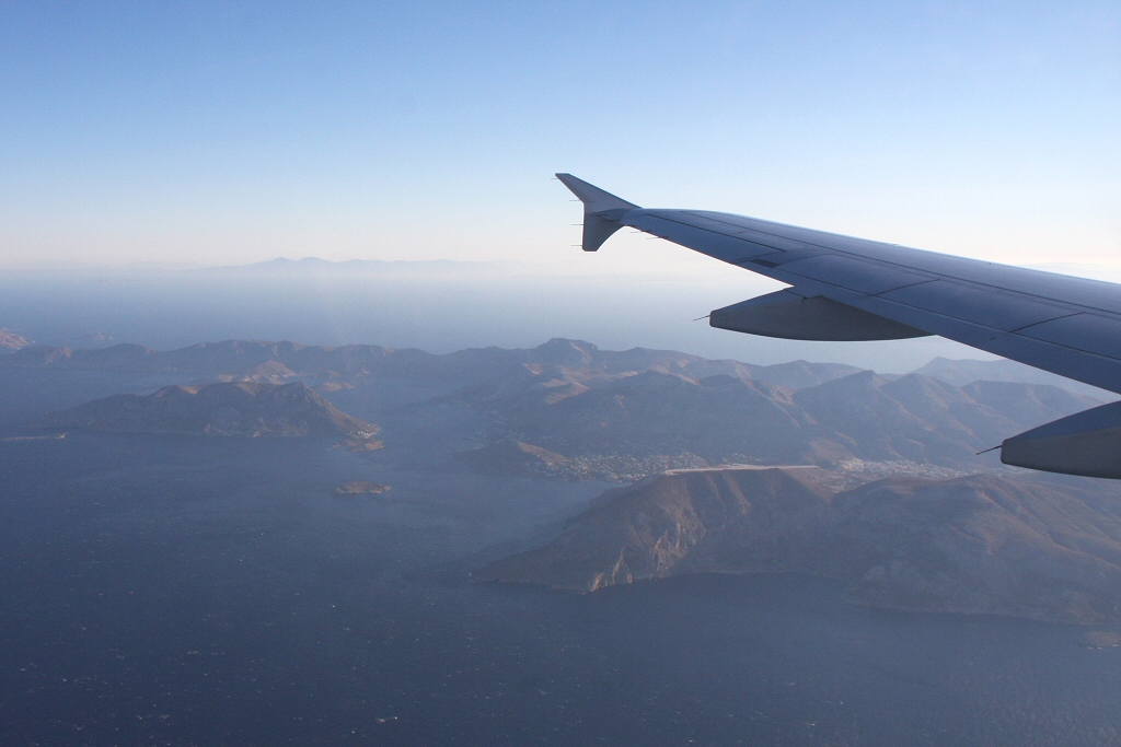 Kommentar/ Remark | Die Insel Kalymnos mit dem Flughafen unter der Tragfläche. The island of Kalymnos with airport under the wing. |