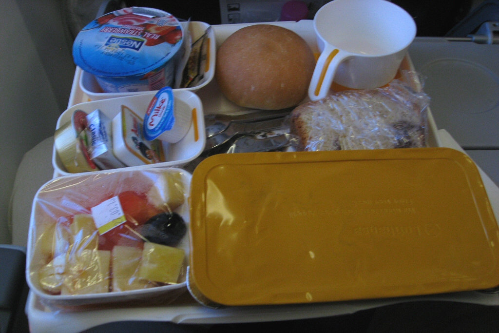 Dinner during flight from Delhi to Frankfurt.