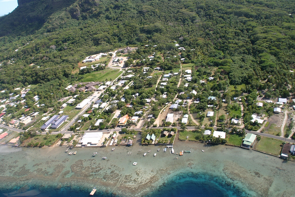 Kommentar/ Remark | Die Ortschaft Vaitape. The village of Vaitape. |