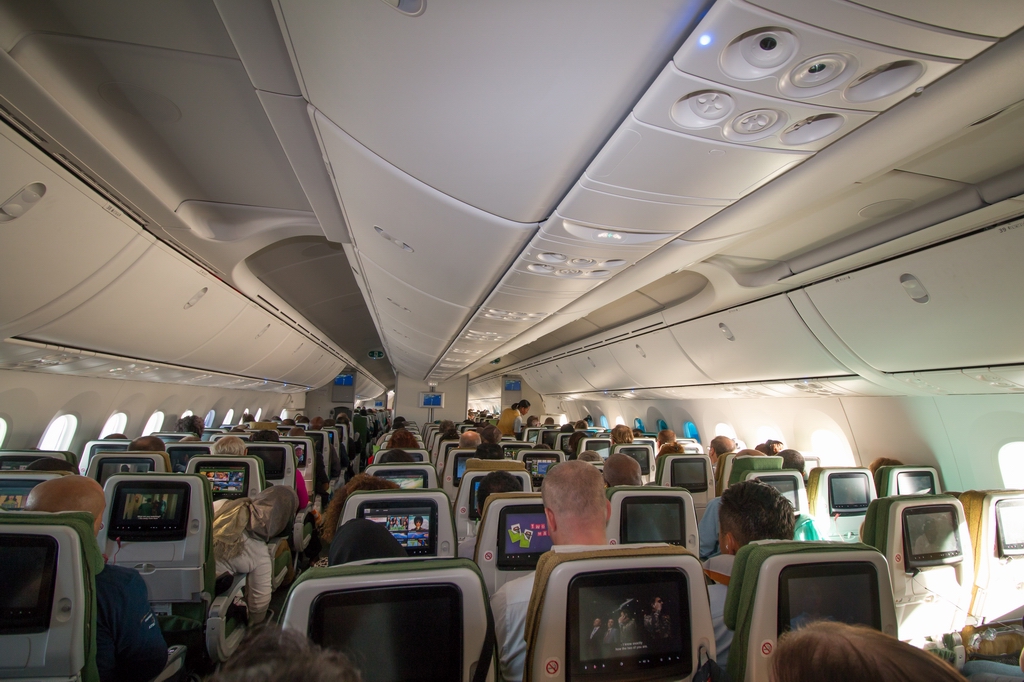 Kommentar/ Remark | Nochmals ein Blick in die hintere Economy Kabine. Another view into rear economy class cabin. |