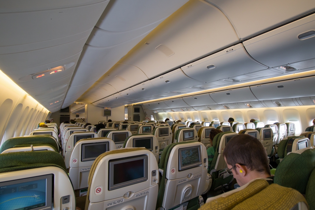 Kommentar/ Remark | Nochmals die hintere Economy Class Kabine während dem Sinkflug. Another picture from rear economy class cabin during descent. |