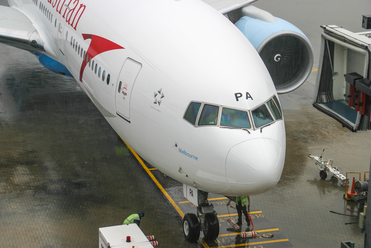 Kommentar/ Remark | 'Austrian 2' nach Wien via Kuala Lumpur geparkt am Gate 59. 'Austrian 2' to Vienna via Kuala Lumpur parked at gate 59. |