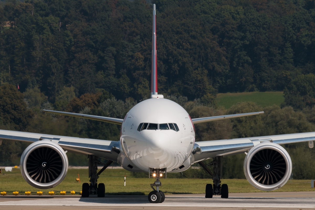 Kommentar/ Remark | Frontansicht der 777 während Lineup auf Runway 16 als 'Swiss 40' nach Los Angeles. Frontal view of this 777 during lineup at runway 16 as 'Swiss 40' to Los Angeles. |