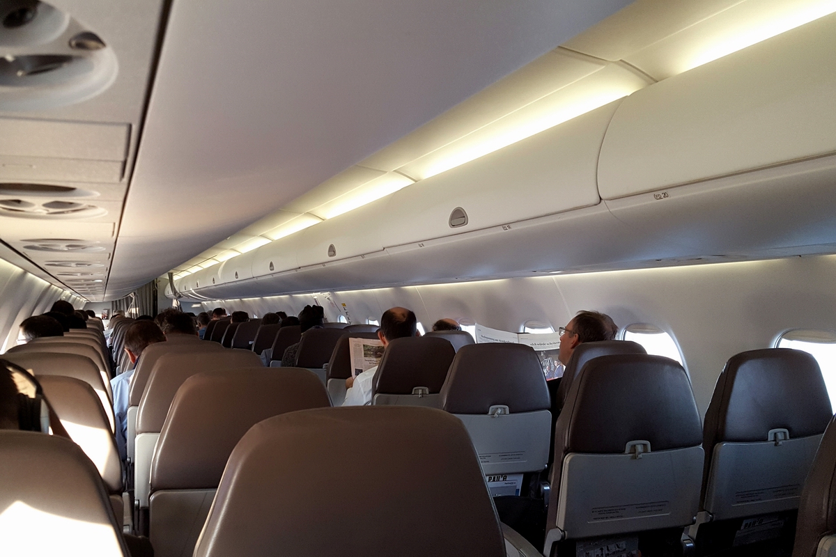 Die Kabine dieses Embraer ERJ-190LR Flugzeuges.