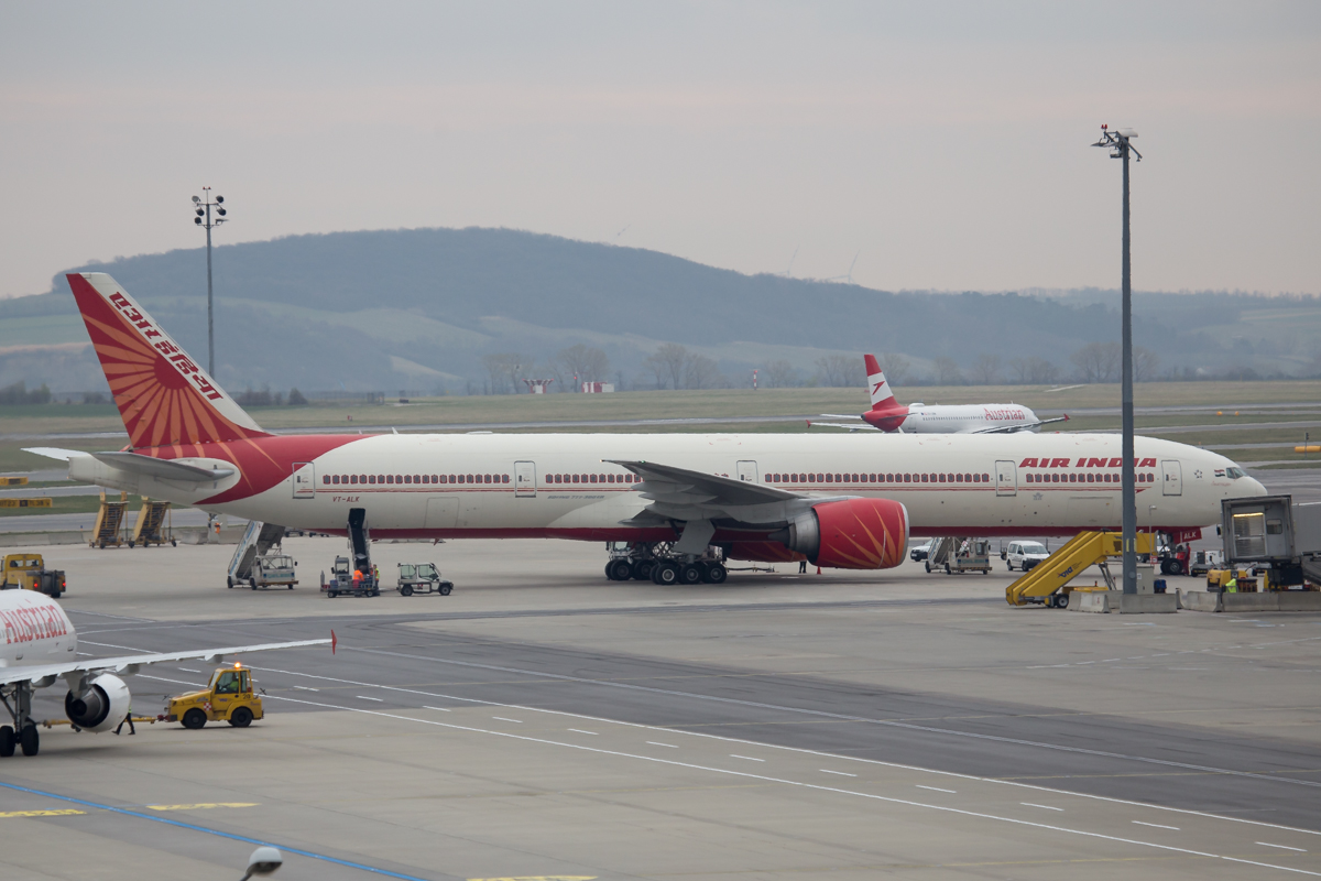Kommentar/ Remark | 'Air India 127' von Delhi via Wien nach Chicago geparkt am Vorfeld. 'Air India 127' from Delhi via Vienna to Chicago parked at apron. |