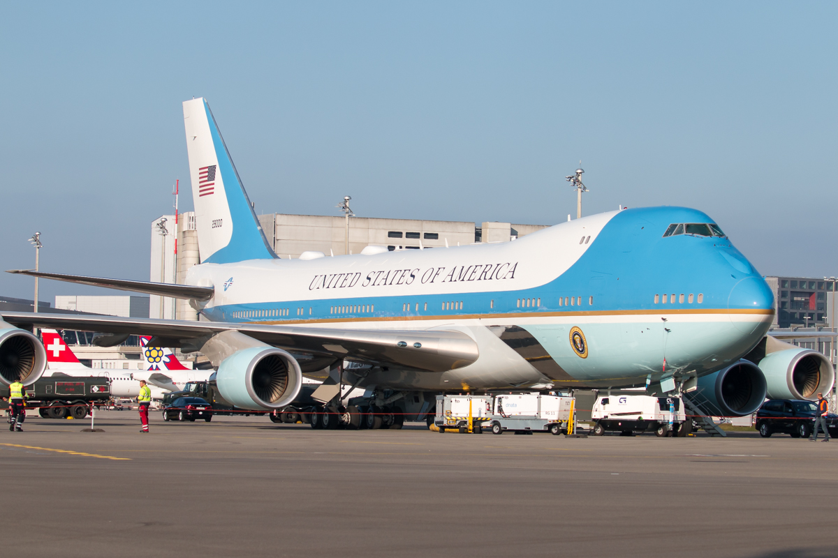 Kommentar/ Remark | 'Air Force One' geparkt am Vorfeld bei SR Technics. 'Air Force One' parked at apron at SR Technics. |