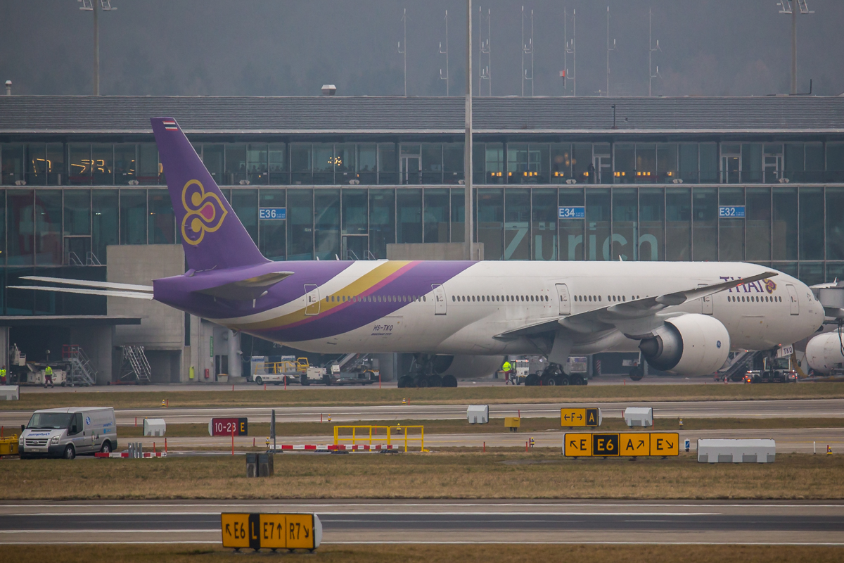 Kommentar/ Remark | 'Thai 971' nach Bangkok wird zum Gate E42 gezogen. 'Thai 971' to Bangkok towed to gate E42. |