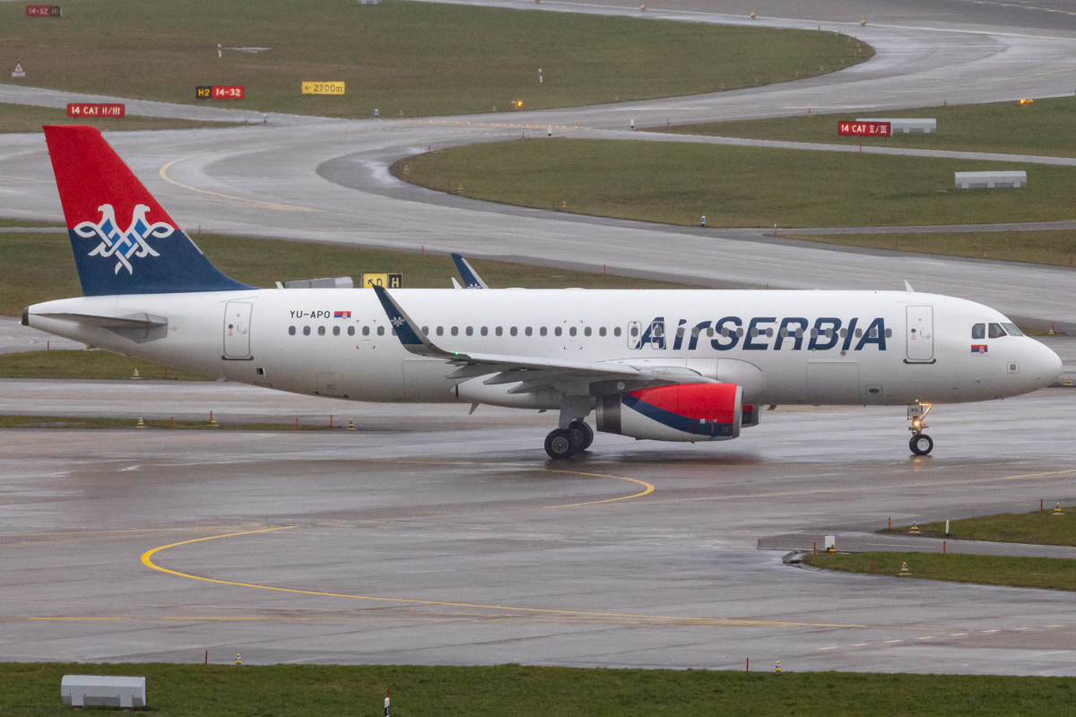 Kommentar/ Remark | 'Air Serbia 371' nach Belgrad auf dem Weg zur Startbahn 32. 'Air Serbia 371' to Belgrade taxiing to runway 32 for departure. |