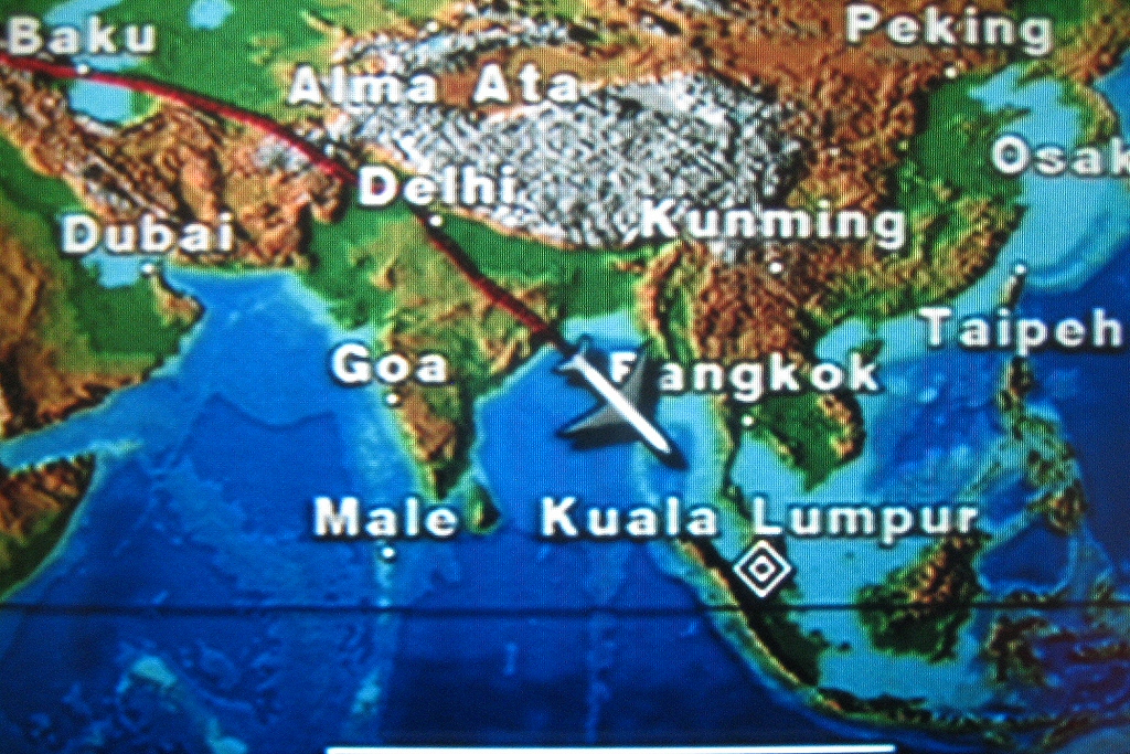 Noch 2 Flugstunden bis zum erster Zwischenstopp in Kuala Lumpur.