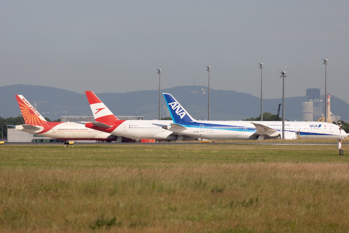 Kommentar/ Remark | ANA B787-9, Austrian B777-200 und Air India B777-300 geparkt am Vorfeld K. ANA B787-9, Austrian B777-200 and Air India B777-300 parked on apron K. |