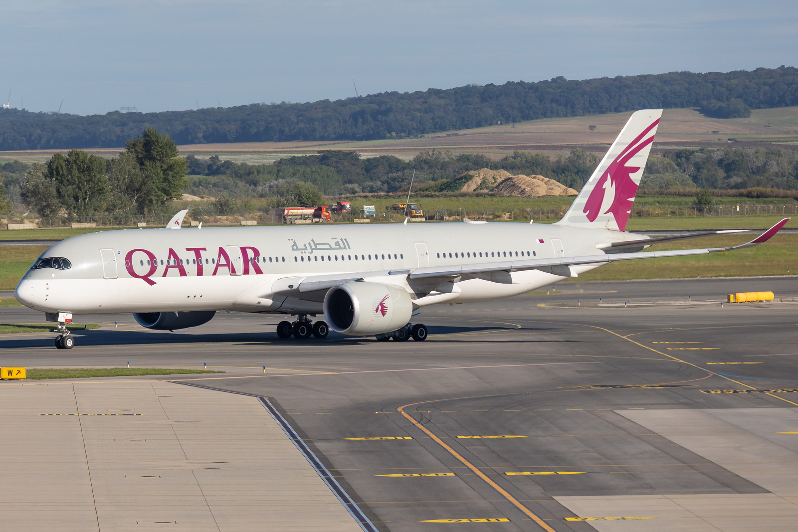 Kommentar/ Remark | 'Qatari 184' nach Doha auf dem Weg zur Startbahn 16. 'Qatari 184' to Doha taxiing to runway 16 for departure. |