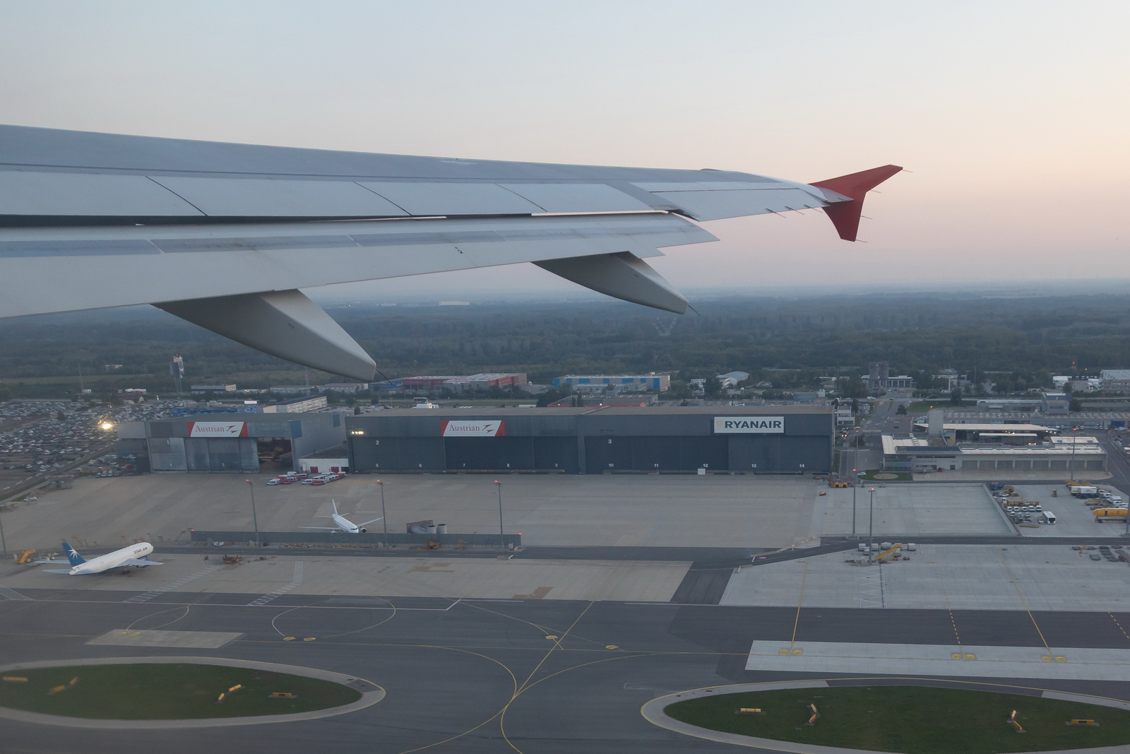 Kommentar/ Remark | 2 Austrian Hangar links und 1 Ryanair Hangar rechts im Bild. 2 Austrian hangars on the left and 1 Ryanair hangar on the right. |