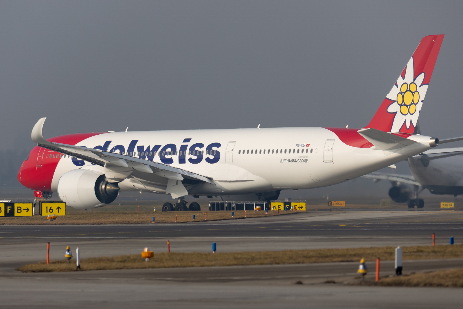 Kommentar/ Remark | 'Edelweiss 92' nach Bogota auf dem Weg zur Startbahn 16. 'Edelweiss 92' to Bogota taxiing to runway 16 for departure. |