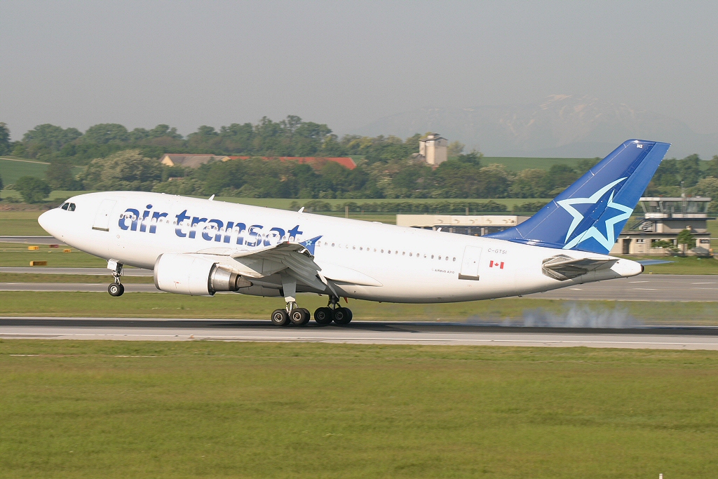 Kommentar/ Remark | Touchdown - 'Transat 428' aus Toronto via Montreal bei der Erstlandung in Wien. Touchdown - 'Transat 428' from Toronto via Motreal during inaugural flight to Vienna. |