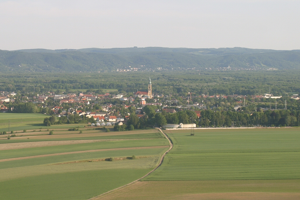 Kommentar/ Remark | Die Stadt Stockerau mit dem 88m hohen Kirchturm. The city of Stockerau with the 88m high church tower. |