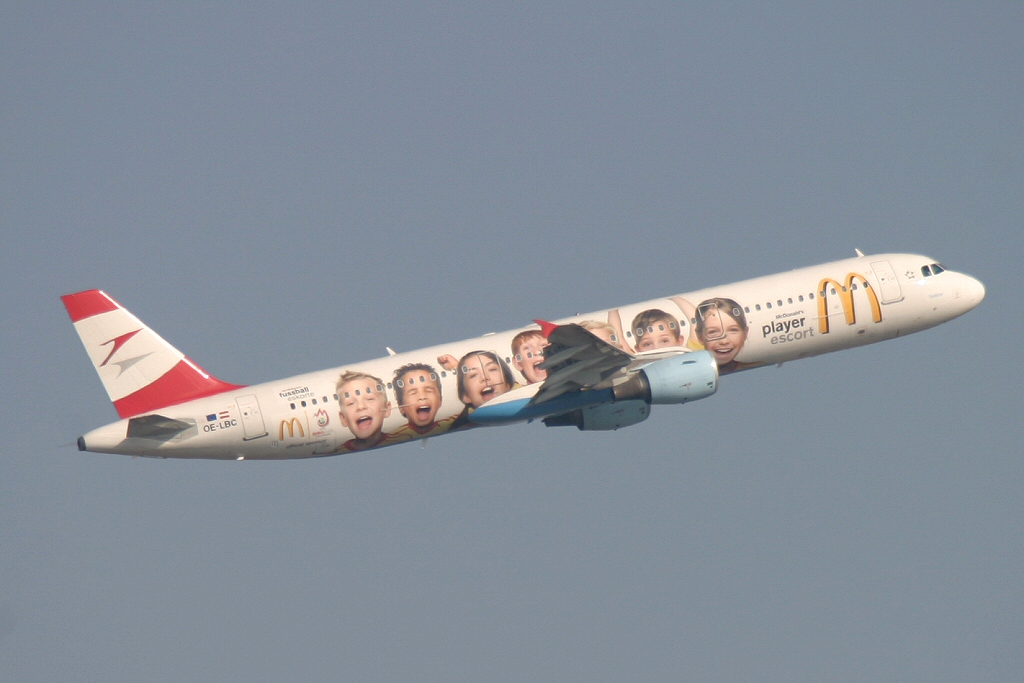 Kommentar/ Remark | McDonalds Logojet nach dem Start von Runway 16 - 'Austrian 773' nach Belgrad. McDonalds Logojet after takeoff at runway 16 - 'Austrian 773' to Belgrade. |