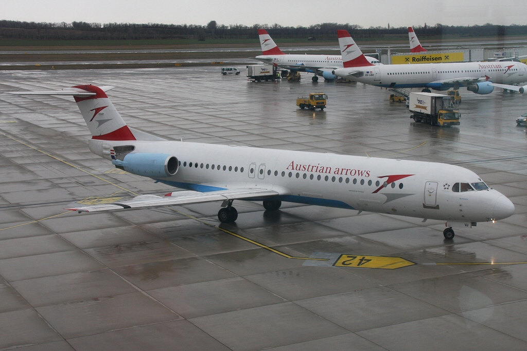 Kommentar/ Remark | Fokker F100 'Bratislava' auf dem Weg zum Gate C62. Fokker F100 'Bratislava' taxiing to gate C62. |