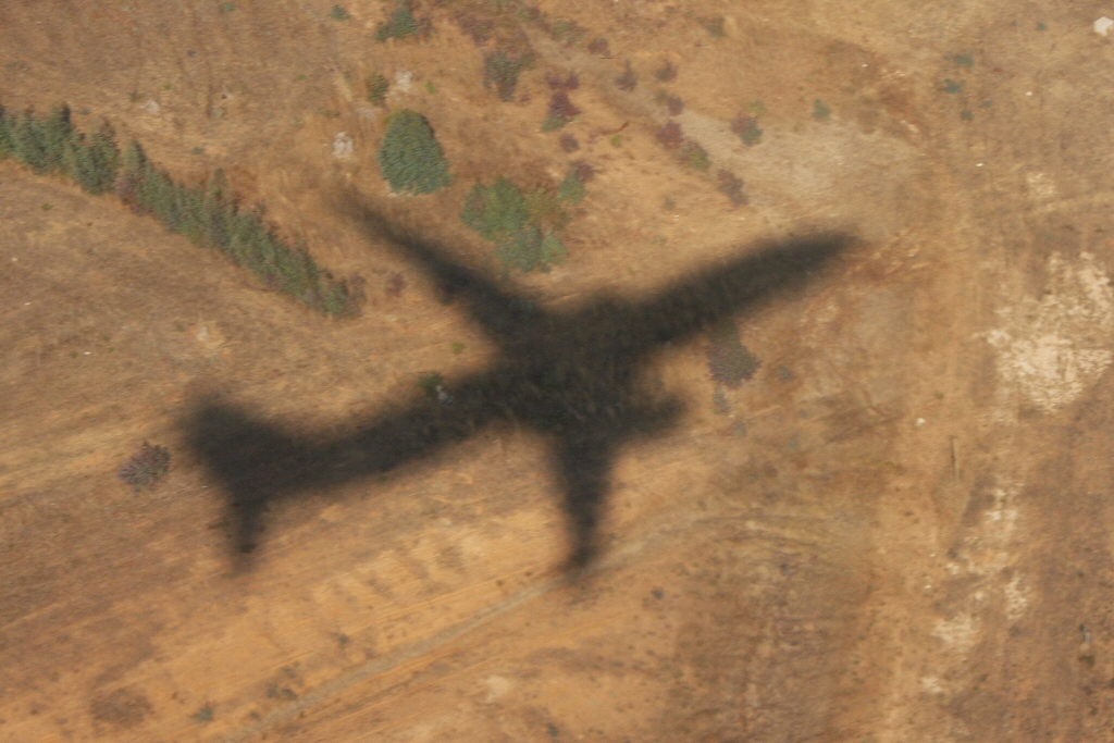 Kommentar/ Remark | Der Schatten unseres Flugzeuges kurz nach dem Start von Runway 36L. The shadow of our aircraft after takeoff at runway 36L. |