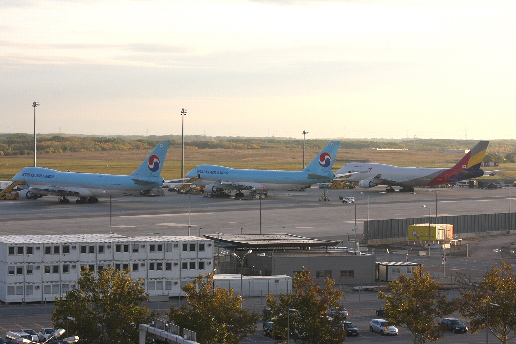 Kommentar/ Remark | Seltener Anblick in Wien - 3 Frachtjumbos, allesamt aus Seoul-Incheon. Rare view at Vienna - 3 Cargo 747, each arriving from Seoul-Incheon. |