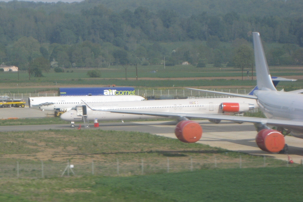 SAS MD-81 stored behind another A340.