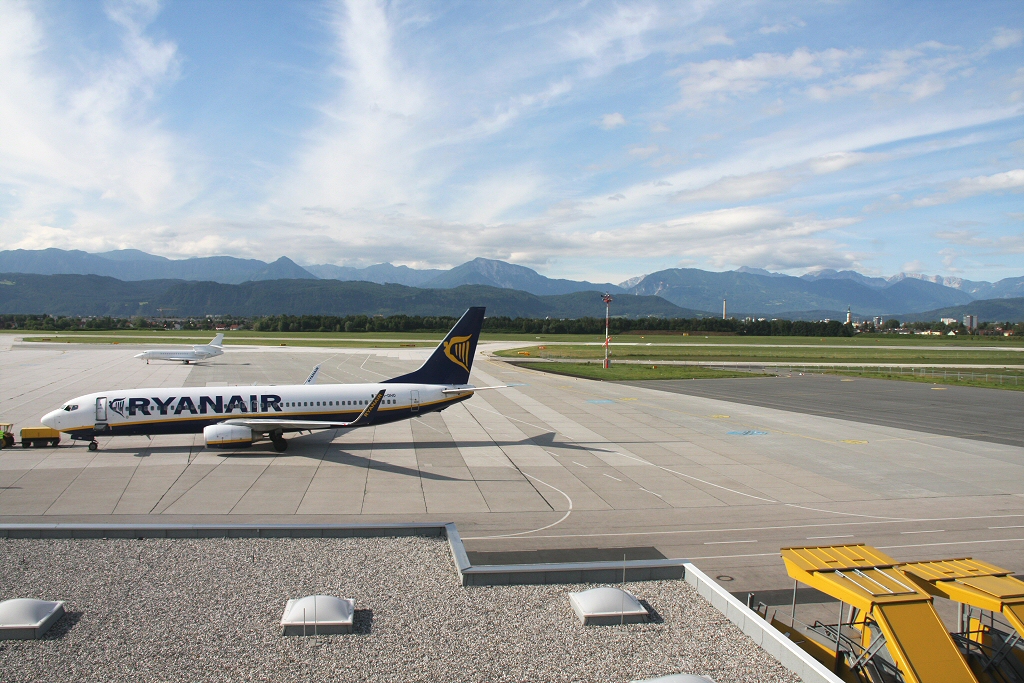 Kommentar/ Remark | Vorfeld des Flughafens mit Ryanair 737. Apron of Klagenfurt airport with parked Ryanair 737. |