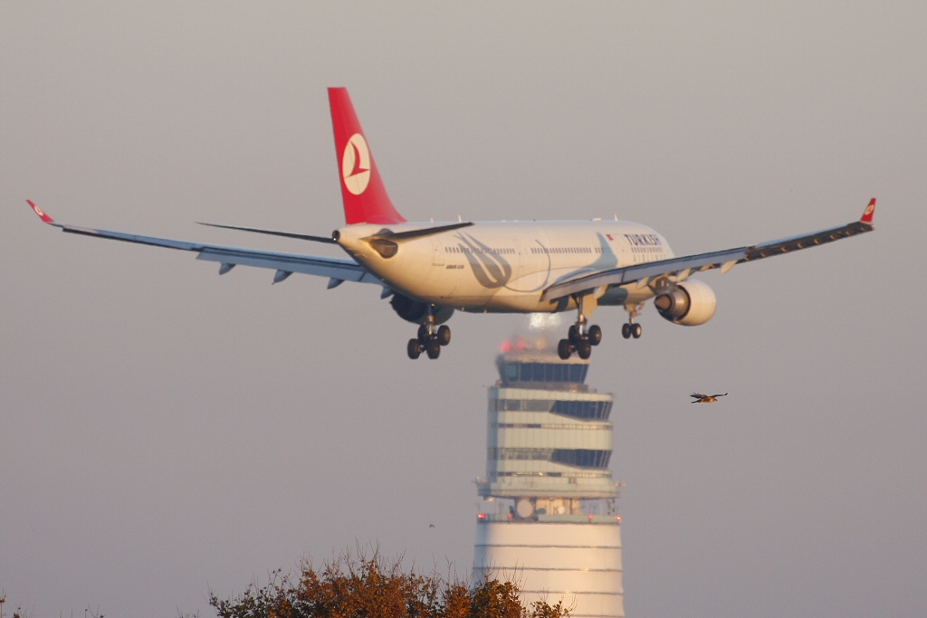 Kommentar/ Remark | Turkish Airbus A330 mit Tower im Hintergund. Turkish Airbus A330 with Vienna tower in the background. |