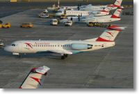 View to the apron. F70 (OE-LFQ), DH8-300 (OE-LTJ), CRJ (OE-LCI) and DH8-400.