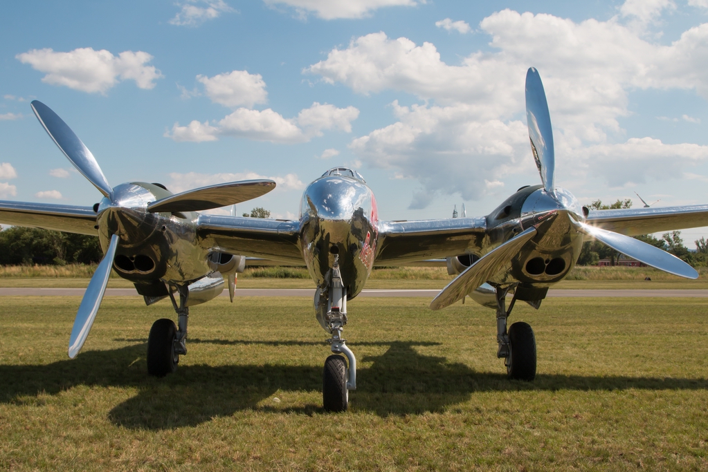 Kommentar/ Remark | Frontalansicht der P-38 mit den riesen Rotorblättern. Front view of this P-38 with the huge rotor blades. |