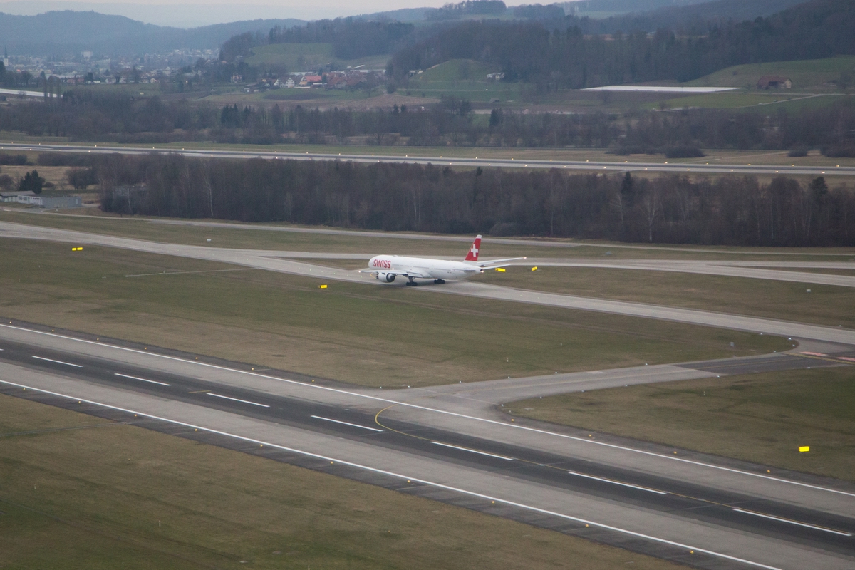 Kommentar/ Remark | Eine weitere 777-300 (HB-JNC) ist gerade als 'Swiss 180' nach Bangkok unterwegs zu Runway 16. A company 777-300 (HB-JNC) taxiing to runway 16 as 'Swiss 180' to Bangkok. |