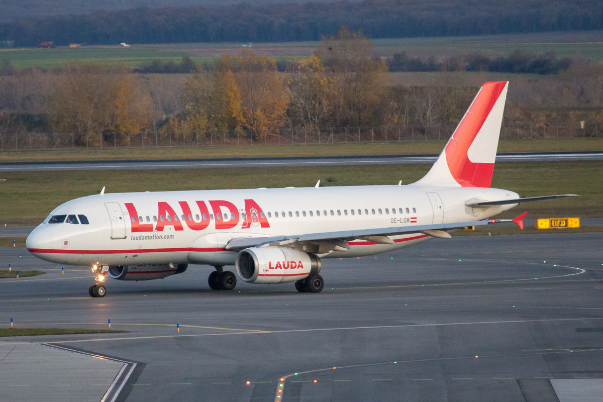 Kommentar/ Remark | 'Lauda Motion 120' nach Edinburgh auf dem Weg zur Startbahn 16. 'Lauda Motion 120' to Edinburgh taxiing to runway 16 for departure. |
