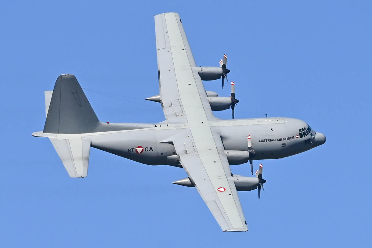 Hercules C-130 flying low in the area around Arbesbach in the Waldviertel.