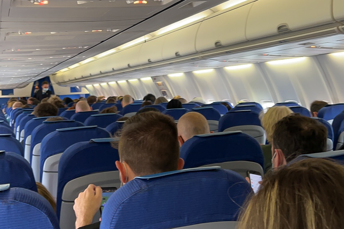 Kommentar/ Remark | Blick in die Kabine kurz vor dem Start nach Amsterdam. View of the cabin just before take-off to Amsterdam. |