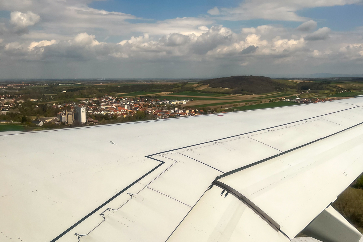 The village of Kleinneusiedl can be seen above the wing.