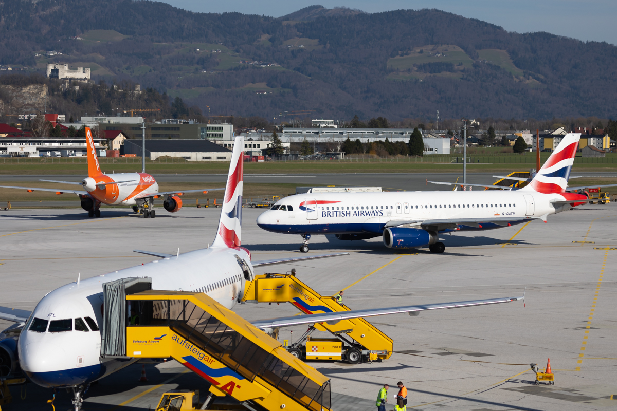Kommentar/ Remark | 2 British Airways A320 geparkt am Vorfeld. 2 British Airways A320 parked at apron. |