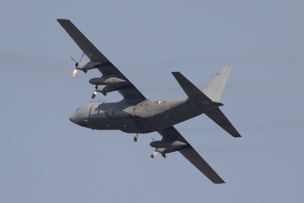 Kommentar/ Remark | C130 des Bundesheeres beim Überflug des Flughafen Wien. C130 from Austrian Air Force during lowpass at Vienna airport. |