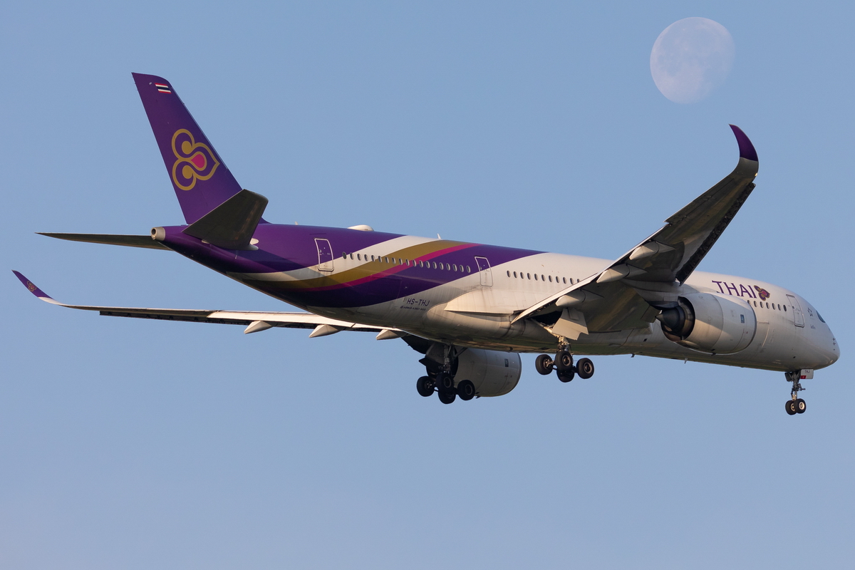 Kommentar/ Remark | Airbus A350 mit wunderschöner Bemalung und dem Mond über der rechten Tragfläche. Airbus A350 with beautiful livery and the moon over the right wing. |