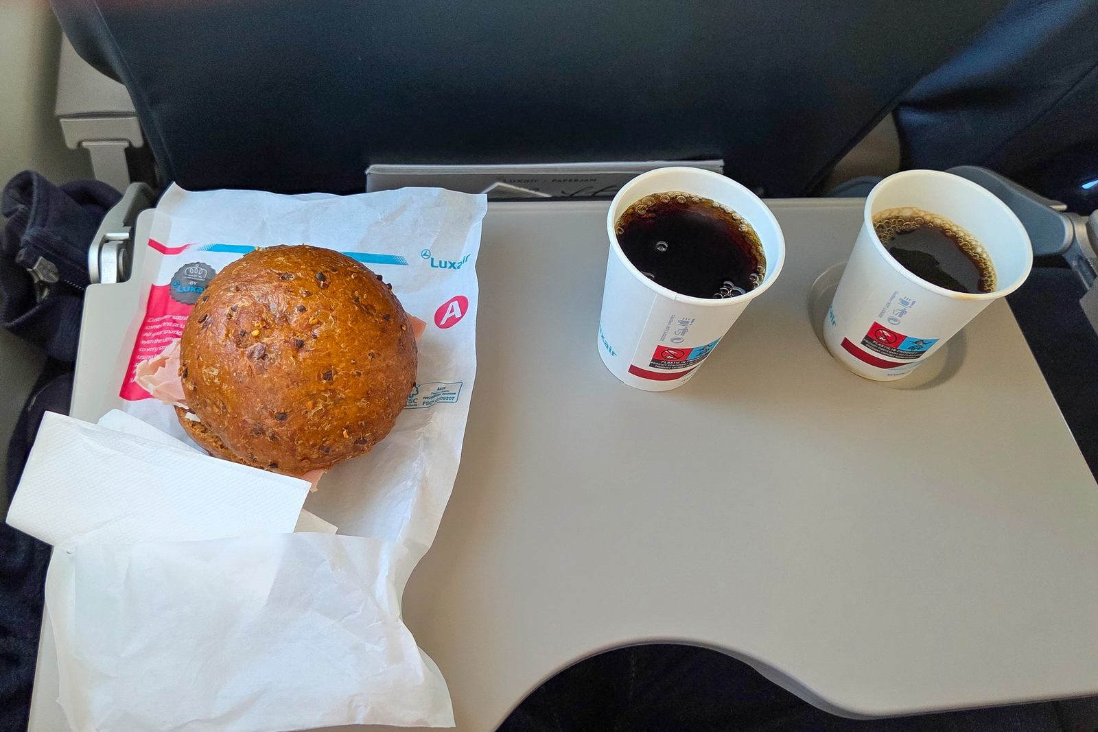 Kurz nach dem Start wurde wieder ein kleiner Snack und Getränke serviert.