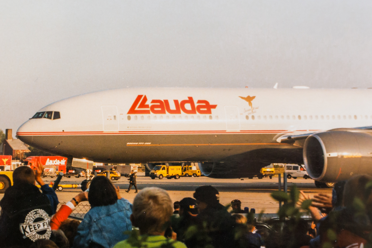 Ankunft der ersten 777 in Österreich mit Niki Lauda am Steuer.