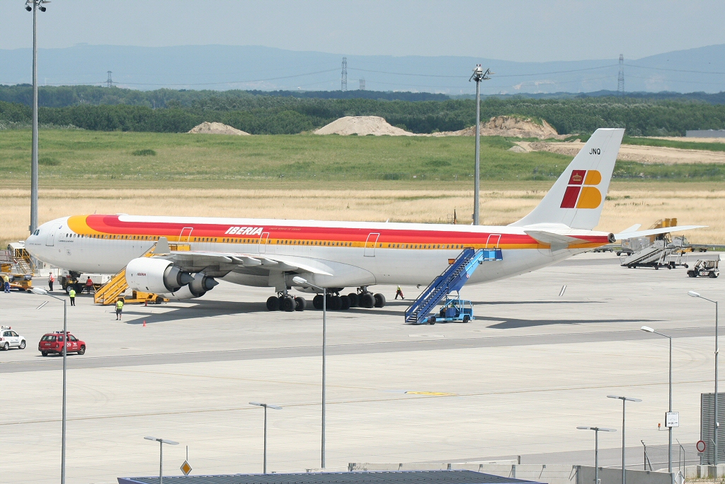 Kommentar/ Remark | Sehr seltener Gast in Wien - Iberia A340-600 aus Madrid zum EURO 2008 Finale. Very rare visitor at Vienna - Iberia A340-600 from Madrid arriving for EURO 2008 final. |
