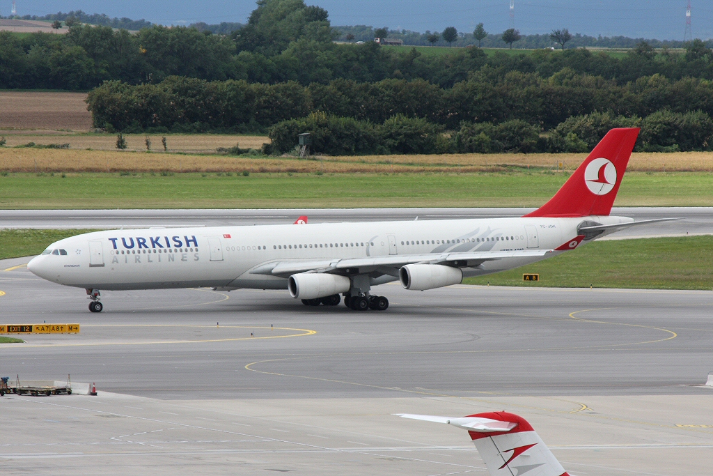 Kommentar/ Remark | Nette Überraschung - TK A340 als 'Turkish 6' nach Istanbul-Atatürk auf dem Weg zur Startbahn 34. Nice surprise - TK A340 taxiing to runway 34 for departure as 'Turkish 6' to Istanbul-Atatürk. |