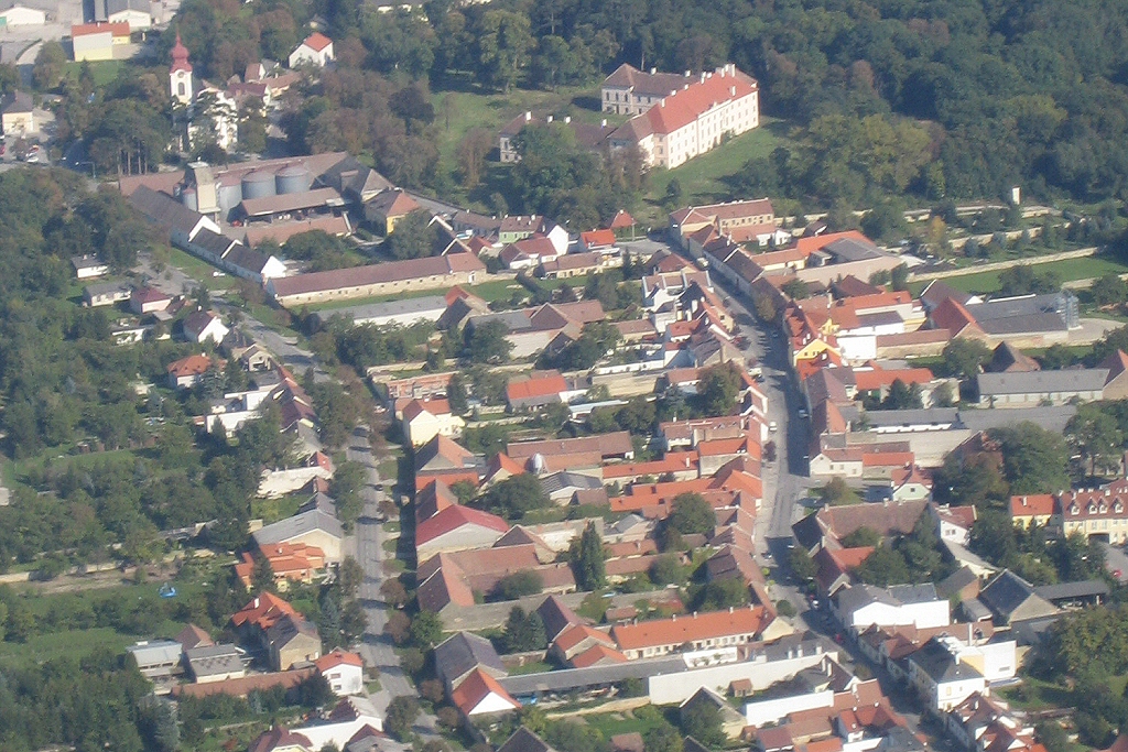 Die Ortschaft Trautmannsdorf kurz vor der Landung auf Landebahn 34.