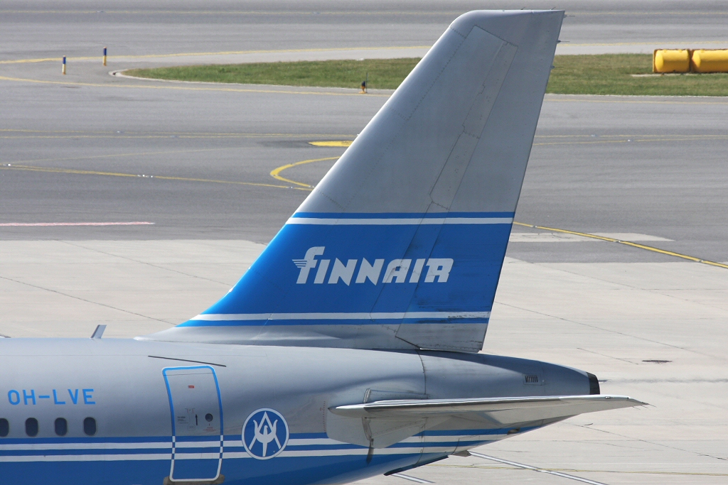Tail of finnair's retro jet.