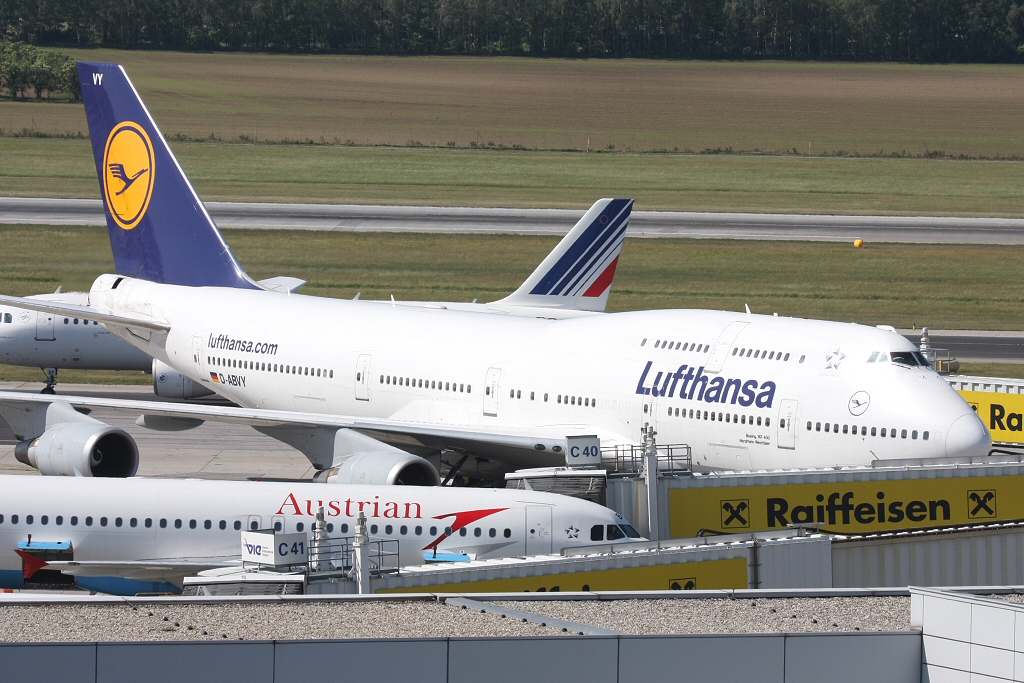Kommentar/ Remark | Seltener Besuch - Lufthansa 747 auf dem Weg zum Gate C39. Rare visitor - Lufthansa 747 taxiing to gate C39. |