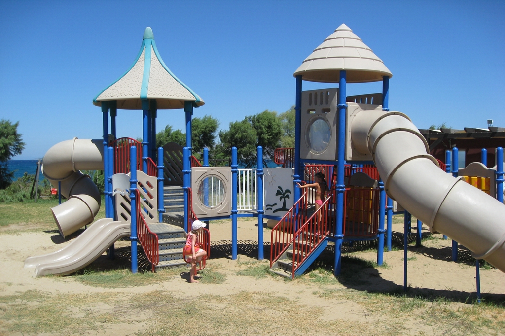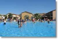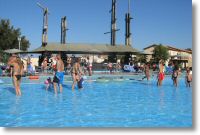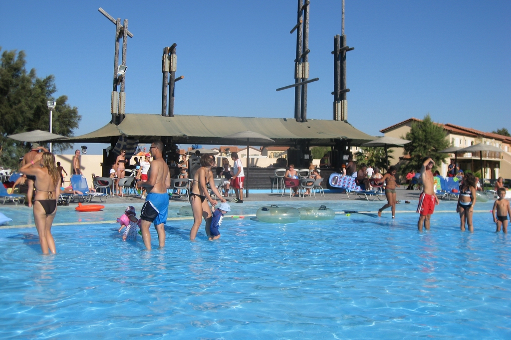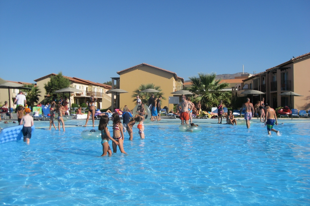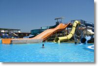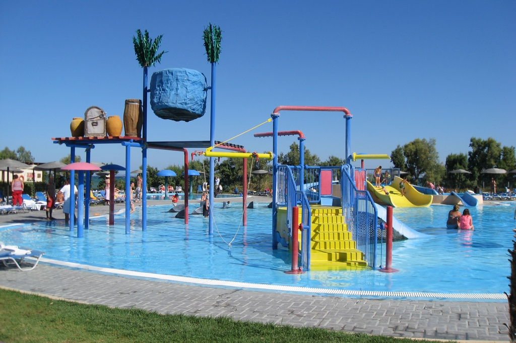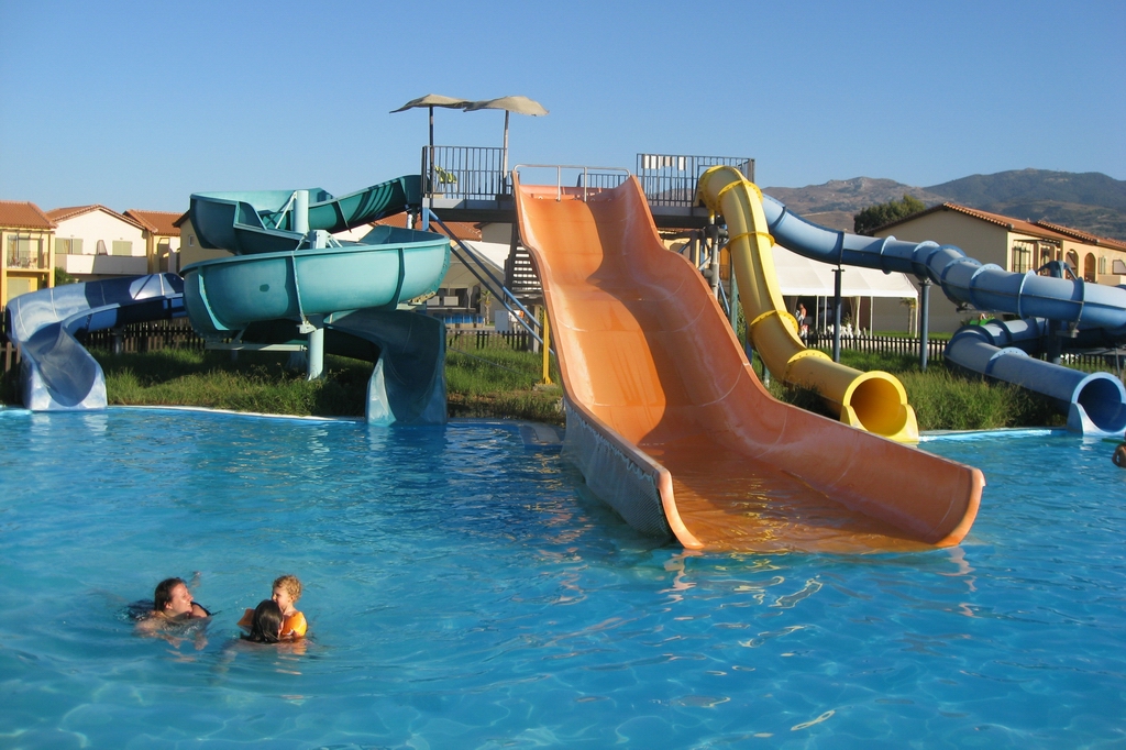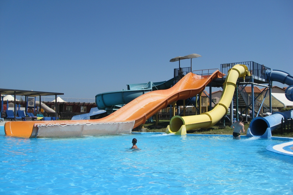 Pool, wo auch schon die ersten Rutschen von den Kindern getestet werden