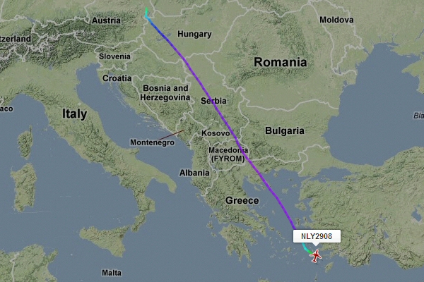 Hier wieder das Routing von Flug Niki 2909 von Kos nach Wien ...
