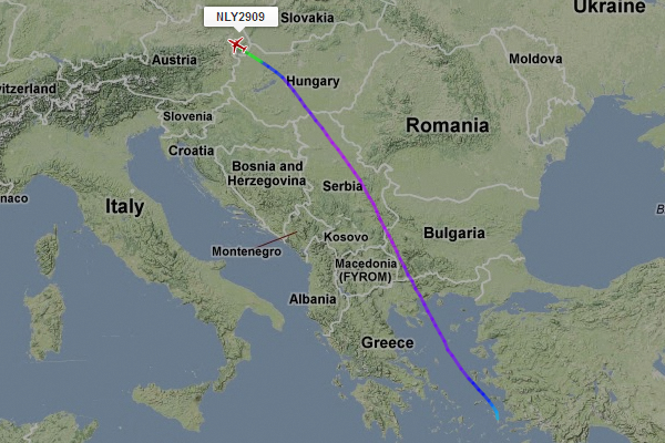 Der Flug führte uns über Ungarn, Serbien und Mazedonien