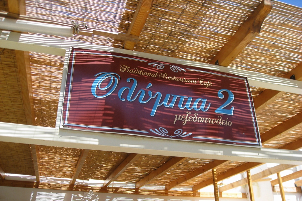 der bekannten Taverne 'Olympia 2', wo schon Ouzo und Tzatsiki vorbereitet